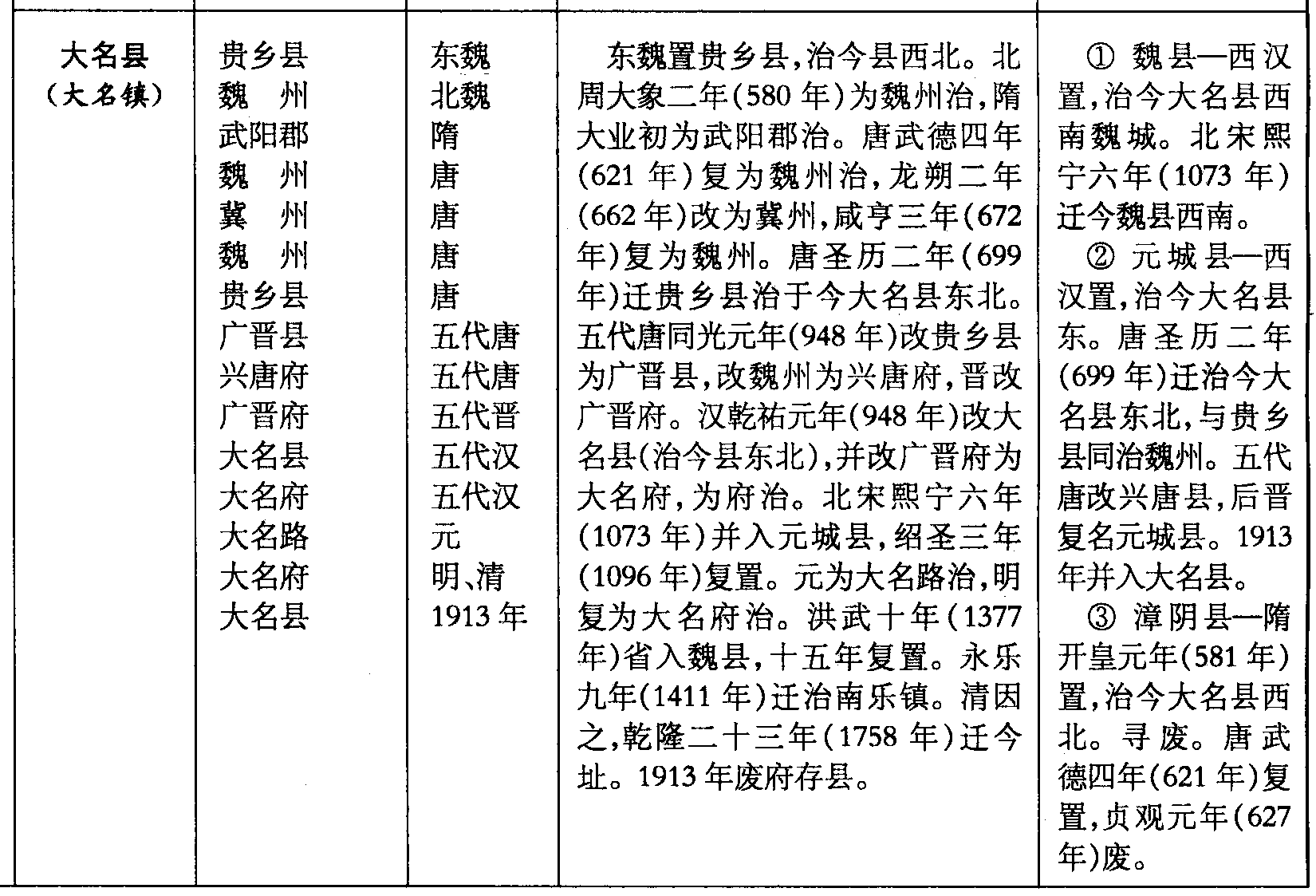 ❸ 漳阴县—隋开皇元年(581年)置,治今大名县西北。寻废。唐武德四年(621年)复置,贞观元年(627年)废。