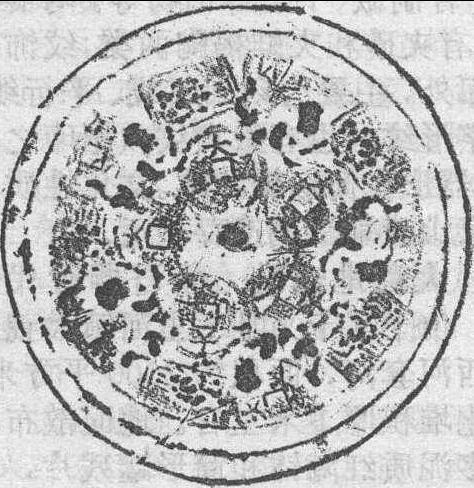 | 释义 | 大定五子镜金代生活用具。1984年在吉林省桦甸市红石砬子镇临江畜牧厂出土。现藏吉林市博物馆。此镜为紫铜铸造,表面外褂锡、铅,呈灰绿色。圆形。鼻钮,钮周围有一圈不甚明显的凸起弦纹,串连五枚分布均匀、方向一致、边缘相邻的“大定通宝”钱纹,其外铸有五个童子和五个用长方形地衬托的牡丹花图案。五个童子背上又各铸一枚方向不同的、露出大半的“大定通宝”钱纹。其外是一周围凸起的小圆点组成的纹带和突起的弦纹。镜缘高而窄。五个童子仰首翘足,头戴圆帽,腹系兜肚,右手扶铜钱,左手执花卉,背上又驮一铜钱,姿态耐人寻味。人物与钱纹均为浮雕式技法。直径12.4、身厚0.2—0.3、钮高0.7、缘厚0.85厘米。