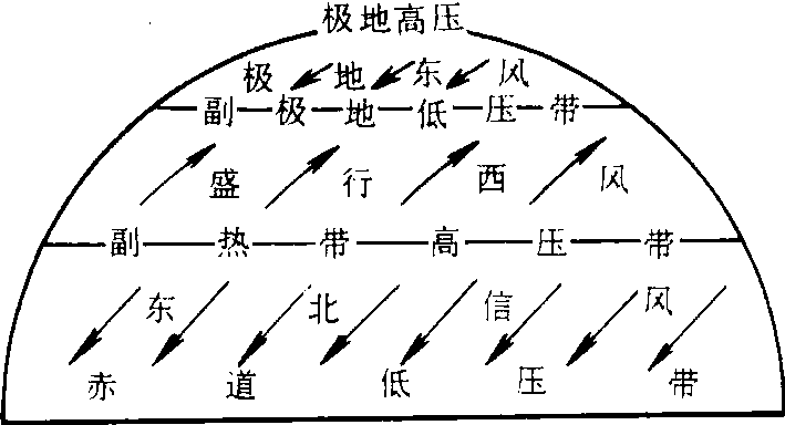 | 释义 | 大气环流daqi huanliuatmospheric circulation围绕整个地球的大范围空气流动的平均状况。它由各种相互联系的气流 (水平的和垂直的、地面的和高空的) 所构成, 是一个复杂的整体。 图 1 近地面的风带与气压带示意图 实际环流 海陆分布和地形条件的影响使得实际的大气环流比其理想模式更复杂。在高空500百帕等压面上(图2), 冬季(1月)中高纬度盛行以极地为中心的沿纬圈流动的西风,其上有明显的行星尺度的平均槽脊。夏季(7月)西风带北移,而在副热带地区出现深厚的高压带。高空图上等高线密集的区域就是行星锋区,是中、高纬度冷暖空气之间的过渡区域,它与气旋、反气旋的形成、活动关系密切。 在海平面平均气压图上(图3、4)存在着若干闭合的高、低压系统,有的常年存在,称永久性活动中心:有的随季节改变,称半永久性活动中心。冬季(1月)北半球的主要活动中心,在中纬度,海洋上有冰岛低压与阿留申低压,大陆上有西伯利亚高压与北美高压,在副热带区有太平洋高压和大西洋高压。夏季(7月),