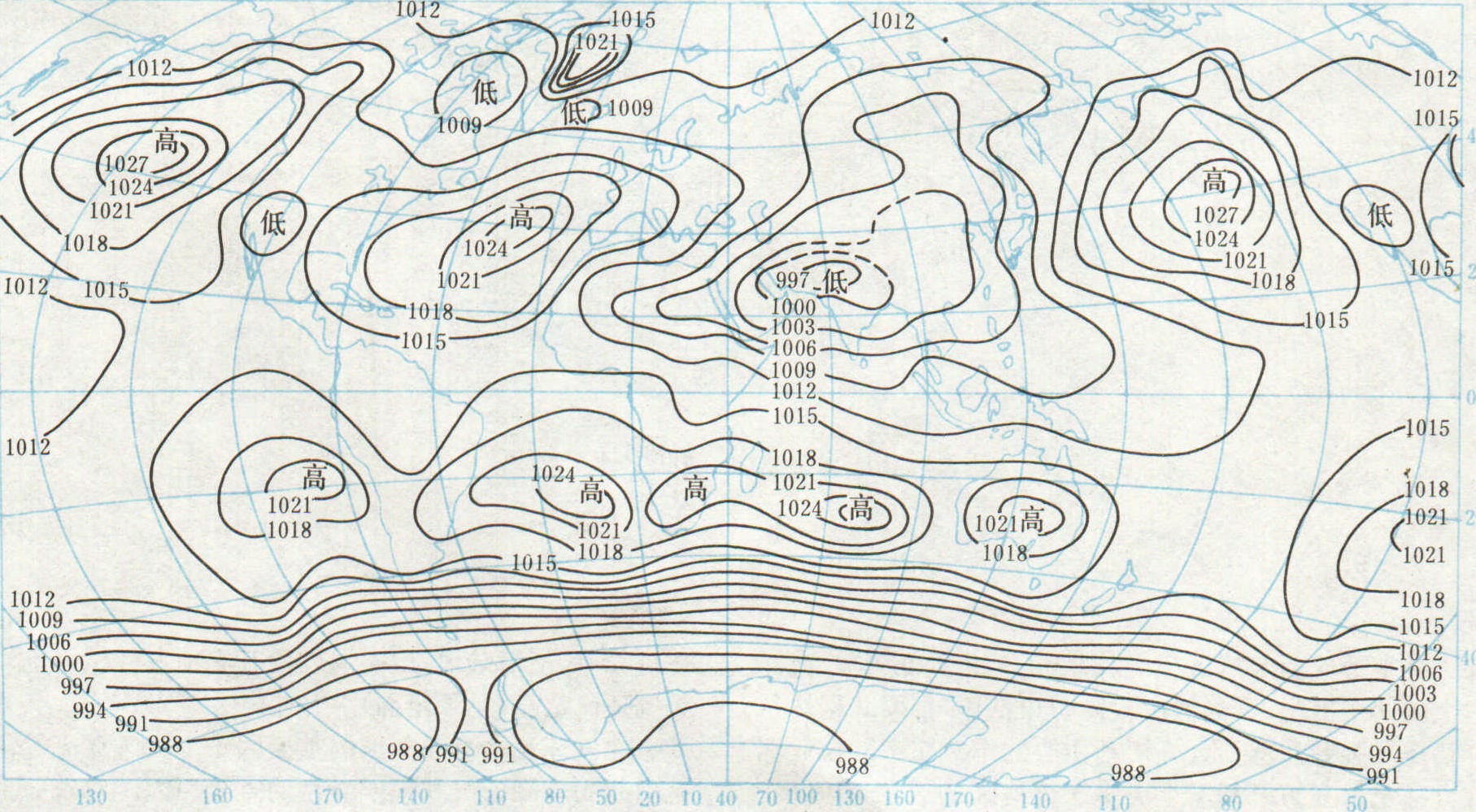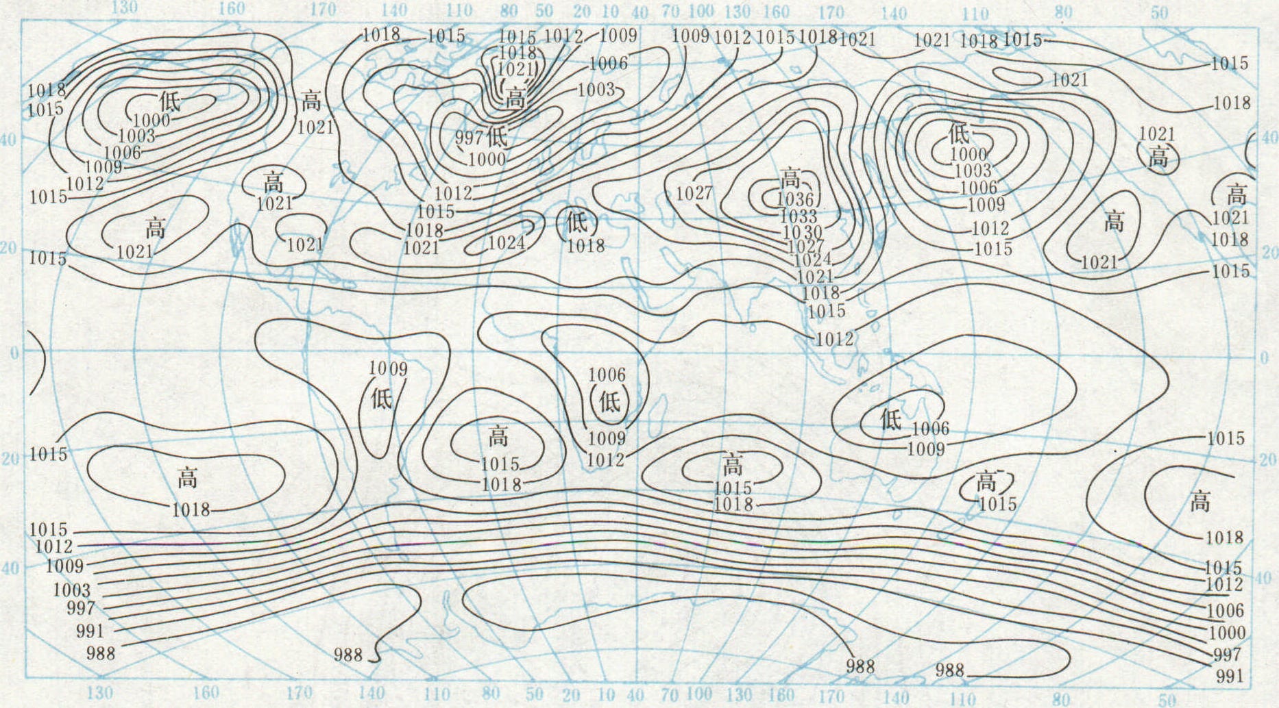图 3 世界1月海平面气压图