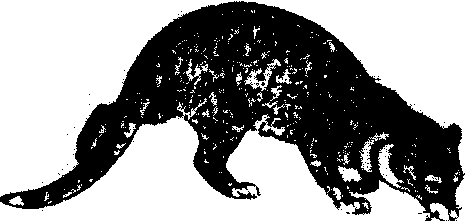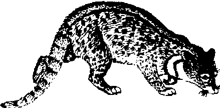 图418 大灵猫 ☚ 小熊猫 小灵猫 ☛ 大灵猫 大灵猫别名九节狸、灵狸、麝香猫。哺乳纲食肉目灵猫科灵猫属。生活于林缘灌丛或草地,独栖生活, 夜行性。以小型兽类、鸟类、蛇、蛙、鱼蟹类、昆虫和果实、种子为食。甘肃分布于康县、文县、武都县。大灵猫的香腺可制作香料;被毛厚密,可制褥垫或制裘,鬣毛、针毛及尾毛可制刷和笔。国家二级保护野生动物。 ☚ 水獭 草原斑猫 ☛ 大灵猫civet cat;civet(Vierra zibetha) |