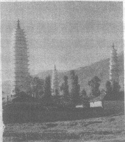 大理三塔古代佛塔建筑,是崇圣寺三塔的俗称。在云南省大理白族自治州大理市西北,位于旧城西北1公里处。始建于唐代,原为崇圣寺建筑的一部分。寺庙早已毁。主塔名“千寻塔”,约建于南诏保和时期(824—839年),塔高69.13米,共16层,为多层密檐式砖塔,自下而上逐渐收缩,方形,中空,塔身每层正面均开券龛,龛中置白色大理石佛像一尊。塔顶四角各有一只铜铸的金鹏鸟。南北两小塔均为八角形多层塔,雕有各式图案纹样,塔顶是3个衔接的铜制葫芦。两小塔各10层,均高42.19米。建于五代。1978—1980年在进行维修时,于千寻塔塔基及塔顶发现南诏、大理国的重要文物680件。三塔矗立于苍山洱海之间,构成一幅美丽的图画。为全国重点文物保护单位。 大理三塔即“崇圣寺三塔”(992页)。 大理三塔 233 大理三塔名胜古迹。在云南大理县城崇圣寺。位于苍山之麓,洱海之滨,鼎足矗立,气势雄伟。主塔名千寻塔,为密檐式方形砖塔,高约70米,共16层,每层置白色大理石佛像一尊。约建于南诏保和时期(824—839)。南北两座小塔高42米多。为10层密檐式八角形砖塔。建于五代。1978年重修三塔,发现唐宋时期珍贵文物600余件。 ☚ 筇竹寺 滇池 ☛ 大理三塔 大理三塔Dalisanta又称崇圣寺三塔。位于云南大理城西北崇圣寺内。均为砖砌,呈鼎足状矗立于苍山之麓、洱海之滨,显得气势雄伟。大塔呈方形,中空,为16层密檐,形状上与西安小雁塔相似。高69.13米,每层正面中央开券龛,置白色大理石佛像一尊。此塔建于南诏丰祐时期即唐长庆三年(823年),历时48年完工。南北两塔,呈八角形,较小,塔内实心。各为10层,均高42.19米,塔身均涂一层白色泥皮,肃穆庄重。各层分别雕有券龛、佛像、莲花、瑞云、花瓶等,典雅华丽。塔顶各有3只铜葫芦,建筑年代约北宋大理国时期。