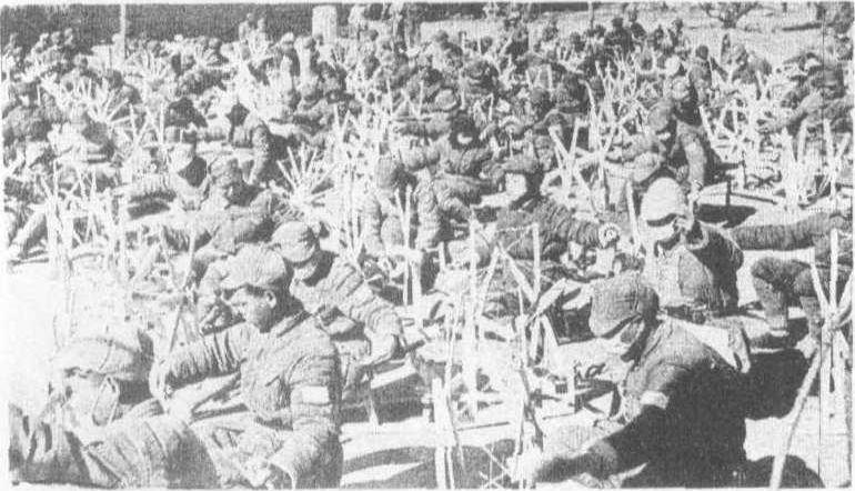 边区军民纺线 大生产运动以发展农业生产为主,同时发展工业、手工业、运输业、畜牧业和商业。 在中共中央的号召下,陕甘宁边区的部队、机关、学校和广大群众最先投入了生产运动。1941年3月,八路军第三五九旅开进南泥湾屯垦。他们一边战斗,一边生产,1941年开荒种地11200亩,1942年达26800亩,1943年达到粮食、经费自给有余,成为全军大生产运动的一面旗帜。从1941年到1943年,经过三年的艰苦创业,陕甘宁边区实现了粮食全部自给,棉花自给50%,基本克服了根据地的经济困难,军民生活得到了显著改善。 其他根据地的军民,按照中共中央“劳力与武力相结合”、“战斗与生产相结合”的方针,在艰苦的战斗环境中也都因地制宜地开展了大生产运动,并取得了重大成绩。如晋绥、北岳、胶东、太行、太岳、皖中6个地区到1943年就增加耕地600多万亩。太行区的部队和机关,做到自给粮食3个月和全年蔬菜。 大生产运动使各抗日根据地克服了严重的财政经济困难,减轻了人民负担,改善了军民生活,为争取抗战胜利奠定了坚实的物质基础;同时密切了党政军民关系,锻炼了广大干部,积累了经济建设经验。 ☚ 精兵简政 整风运动 ☛ 大生产运动 大生产运动Dashengchan yundong抗日战争时期,中国共产党领导解放区军民开展的大规模生产运动。1941年,中共中央号召抗日军民开展大规模生产运动。王震率领八路军第三五九旅开赴陕北南泥湾,开荒种地,取得了很大的成绩,是部队生产的一面红旗。在中国共产党的领导下,大生产运动迅速扩大到敌后各解放区,抗日军民的大生产运动取得了伟大的成绩。大生产运动的开展,使各解放区军民战胜了由于日本帝国主义的进攻、国民党顽固派的经济封锁以及自然灾害所造成的严重物资困难,解放区的财政经济得到恢复和发展,改善了军民生活,提高了部队战斗力,巩固和发展了抗日根据地,为夺取抗日战争胜利奠定了基础。 ☚ 第三次反共高潮 延安整风运动 ☛ 大生产运动1941年起由于日军的“扫荡”和国民党的封锁,抗日根据地的财政经济遇到很大困难。陕甘宁边区的部队和机关较早地开展生产运动,把农民群众也组织起来发展生产。1942年开始,各根据地党政军民学普遍地开展了这项大生产运动,使共产党领导的革命力量渡过了严重经济困难,而且积累了领导经济工作的经验。 大生产运动指中国共产党领导的抗日民主根据地军民同时发动的大规模生产运动。1941年和1942年是中国人民抗战最艰苦的时期,财政经济遇到了极大的困难,出现了机关部队人员几乎没有吃穿的严重局面。毛泽东及时提出了“发展经济,保障供给”的经济和财政工作的总方针,各根据地军民开展了大规模的生产运动。人民群众通过减租减息和互助合作发展了农业生产,部队机关开展了自给性的生产运动。“自己动手,丰衣足食”,减轻了人民的负担,密切了军民关系,渡过了难关,为抗战胜利准备了物质基础。 大生产运动抗日战争时期解放区军民开展的大规模生产运动。1941年解放区在日本帝国主义的野蛮进攻、残酷“扫荡”和国民党顽固派的军事包围、经济封锁下,经济和财政发生了极大困难。针对这种情况,中共中央提出“发展经济、保障供给”的经济和财政工作总方针,号召解放区军民开展大生产运动。当时的生产模范八路军第359旅一手拿枪、一手拿锄,为边区军民做出了榜样。接着各级抗日民主政权以及根据地的军民纷纷响应党中央号召,在发展农业的同时,还办起了许多自给性工业和商业。这一运动不仅打破了国民党军队的经济封锁,使解放区克服了严重的财政经济困难,而且还改善了军民生活,减轻了人民负担,密切了军民关系,为抗日战争的胜利准备了物质基础。 大生产运动抗日战争时期中国共产党领导根据地军民开展的生产自救运动。其中陕甘宁边区最为典型。 大生产运动抗日战争时期中国共产党领导抗日根据地军民努力发展生产的群众运动。抗日战争进入相持阶段后,日军对敌后抗日根据地展开了残酷的“扫荡”,国民党又对根据地实行经济封锁,根据地财政、经济出现严重困难。为战胜困难、坚持持久抗战,中共中央提出“发展经济,保障供给”的口号,并要求一切军队在不妨碍作战的条件下,都要进行生产自给运动,自己动手改善自己的生活,减轻人民负担。大生产运动从陕甘宁边区开始,推广到各根据地。各地军队、机关和学校都组成庞大的生产大军,开垦荒地,种植粮棉,解决军民的衣食问题。1943年,陕甘宁边区部队开荒种地面积达到21.5万亩,产粮3万石, 产蔬菜2300万斤。1942年后根据地财经状况好转,政府立即减轻人民负担。陕甘宁边区农民所交的公粮,1941年占总收获量的13.58%,1942年降至11.14%,1943年更降为不足9%。从1943年起,敌后各根据地的机关一般能自给两三个月,甚至半年的粮食和蔬菜,实现了“自己动手,丰衣足食”的要求。大生产运动克服了根据地财政、经济的严重困难,为抗战胜利奠定了物质基础;它还增强了军民、官兵、军政团结,培养、锻炼了一批领导工农业生产的干部和专门技术人才,具有重大的历史意义。 大生产运动 大生产运动抗日战争时期中国共产党领导解放区军民开展的大规模生产运动。1939年后日寇对抗日根据地进行大规模残暴扫荡,同时国民党反动派连续掀起三次反共高潮,停发八路军、新四军给养,实行严密经济封锁,使