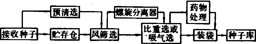 | 释义 | 大豆种子加工soybean seed processing对大豆种子进行清选、分级等处理的过程。加工中要求清除细小茎叶与砂土等混杂物,以及半粒种和虫蛀种,每千克大豆中苍耳子不得超过5粒。大豆种子加工流程如下: