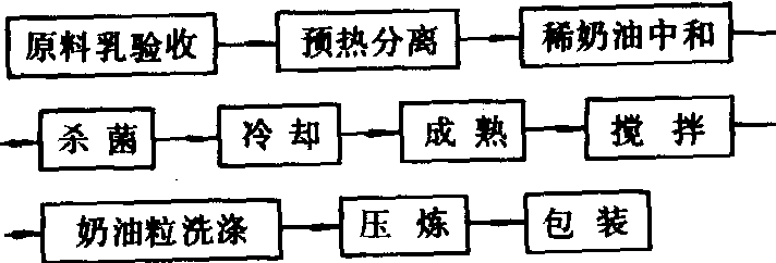 原料乳的验收同消毒牛乳加工。 预热分离 将牛乳预热到35~40℃后,通过牛乳分离机将乳脂分离,得到含脂率为36~40%的稀奶油。 稀奶油中和 有时稀奶油酸度偏高,为了防止杀菌时蛋白凝固影响质量,需进行中和处理,使酸度下降到20°T。一般使用碳酸钠中和,添加量经过计算确定,使用带搅拌的贮乳缸中和。 杀菌 杀死病原菌及有害细菌,破坏酶的活力,特别是脂肪酶,以延长产品的保存期。杀菌设备分间歇式和连续式两种,产量小可选用带搅拌器的夹层冷热缸,产量大可选用板式杀菌机。 成熟 将杀菌后的稀奶油迅速冷却到8℃以下,在保温缸内放置8~12小时进行物理成熟,乳脂中大部分甘油脂,由乳状液态转变成固态,以使搅拌过程顺利进行。常用设备是带搅拌器的立式冷热保温缸。成熟后的稀奶油经过搅拌,乳脂可聚附成奶油颗粒同酪乳分开,从而进一步加工成奶油。 搅拌 搅拌过程是在搅拌机中完成的,搅拌机以42转/分的速度旋转30~40分钟,当稀奶油分离成奶油颗粒与酪乳时,即停止搅拌,排除酪乳。一般采用锥型、方型和柱锥结合型等间歇式搅拌机。 奶油粒洗涤 注入清水洗涤奶油颗粒,可除去残留的蛋白质及乳糖,提高产品的保藏性,调整奶油温度和硬度。一般洗涤两次即可,洗涤用搅拌机的转速为17~20转/分。 压炼 洗涤后进行压炼,使奶油颗粒成为组织细腻的奶油层,通过压炼调整产品的水分含量和粘度。 包装 将压炼好的奶油尽快地进行包装。分大小两种包装规格。包装物材料要求不透油、不透水、不透气、防霉、遮光和有韧性。小包装常用铝箔纸作内包装物,或用塑料盒以铝箔纸封口。手工包装常采用透明耐油纸作内包装物,然后装纸盒,再装纸箱。大包装在纸箱内,衬以牛皮纸及硫酸纸,装满奶油后打包入库。包装过程中应严格按卫生制度操作,避免细菌污染。奶油的小包装常使用自动包装机,包装后迅速送入-15℃以下低温冷库保藏。奶油在4~6℃温度下冷藏,保存期为7天;在-15℃冷藏时,可保存6个月;在-25℃以下可长时间保存。奶油极易吸收异味,丧失乳脂香味,所以保存环境要清洁。 |