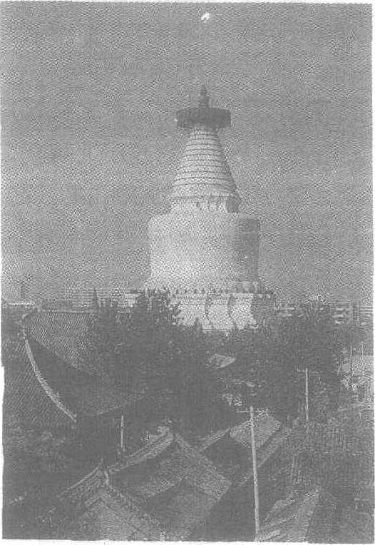 | 释义 | 妙应寺白塔 妙应寺白塔在北京西城区。俗称“白塔”、“喇嘛塔”。元代至元八年始建,历时八年建成。为当时在中国任职的尼泊尔工艺家阿尼哥设计建造。塔成,塔前又建大圣寿万安寺,明代改名妙应寺。塔高五十多米,塔身为白色,覆钵形,上为圆锥形长颈,共十三节。塔顶有一金属宝盖,直径约十米,上覆铜板瓦,四周悬挂三十六个饰以铜制透雕的华曼及铁铃。宝盖上为一铜塔刹,高约五米,重达四吨。整个塔稳重挺拔、雄伟壮丽。 ☚ 佛宫寺释迦塔 真觉寺金刚宝座塔 ☛ 古代名物 > 宗教類(上) > 聖迹寳塔部 > 名塔 > 妙應寺白塔 妙應寺白塔 miàoyìngsìbáitǎ 座落於北京阜城門内之喇嘛塔。塔身潔白。在妙應寺右偏,故稱。始建於遼壽昌二年(公元1096年),元至元八年(公元1271年)重修。塔基呈“亞”字形,上建須彌座二重。塔身由一白堊色覆鉢體與相輪組成,相輪上爲青銅寳蓋及流蘇,寳蓋四周懸掛銅鐸三十六枚。寳蓋頂原置一寳瓶,現爲金色銅質小喇嘛塔。通高十五丈有餘。參見本類“妙應寺。”參閱清·孫承澤《天府廣記·寺廟》、吳長元《宸垣識略·内城四·白塔寺》。