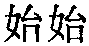 ❷犹只也;仅也。李白《梁园吟》:“天长水阔厌远涉,访古~及平台间。”始及,只及也。杜甫《陪王使君晦日泛江》诗:“山豁何时断,江平不肯流。稍知花改岸,~验鸟随舟。”稍亦有只义、仅义,参见539页“稍❺”。始与稍互文,稍知,犹云只知或仅知,始验,犹云只觉或仅觉也。言在舟中不觉江水之流,只觉花改岸,鸟随舟而已。韩愈《崔十六以诗及书见投因酬》诗:“冬惟茹寒齑,秋~识瓜瓣。”始与惟互文,始识,只识也。刘禹锡《吏隐亭》诗:“外来~一望,写尽平生心。”始一望,只一望也。曹邺《文宗陵》诗:“~随苍梧云,不返苍龙阙。”始随,只随也。李商隐《赠孙绮新及第》诗:“陆机~拟夸《文赋》,不觉云间有士龙。”冯浩注:“此必兄弟能文而绮方年少。”始拟,只拟也,意云技只此耳。不觉,即不意之义。韩偓《小隐》诗:“灵椿朝菌由来事,却笑庄生~欲齐。”意谓庄子只知《齐物论》也。又《仙山》诗:“水清无底山如削,~有仙人跨鹤来。”始有,只有也。杜荀鹤《苦吟》诗:“~拟归山去,林泉道在兹。”始拟,亦犹云只拟,与商隐诗字面同而语意异。 始 始❶正。江淹《杂体·休上人怨别》:“露彩方泛艳,月华始徘徊。”此言正徘徊。 ❷只,仅。李白《梁园吟》:“天长水阔厌远涉,访古始及平台间。”始及犹只及。 ☚ 夜来 怪底 ☛ 始 始乃。吴文英《渡江云三犯》(羞红颦浅恨):“还始觉、留情缘眼,宽带因春。明朝事与孤烟冷,做满湖、风雨愁人。”“始觉”,即乃觉。 ☚ 祇 参差 ☛ 始 始shǐ开始。《豳风·七月》七章: “亟其乘屋,其始播百谷。”《鲁诗》说:“及尔闲暇,亟而乘盖尔野外之屋,春事起,尔当始播百谷矣。”郑《笺》:“亟,急;乘,治也。十月定星将中,急当治野庐之事,其始播百谷,谓祈来年百谷于公社。”《大雅·绵》三章:“爰始爰谋,爰契我龟。”爰,语助词,无实义。契,烧灼开。毛《传》:“契,开也。”郑《笺》:“始与豳人之从己者谋,谋从又于是契灼其龟而卜之,卜之则又从矣。” 《大雅·灵台》一章:“经始灵台,经之营之。”毛《传》: “神之精明者称灵,四方而高曰台。经,度之也。”郑《笺》:“文王应天命,度始灵台之基趾,营表其位。”马瑞辰《通释》:“经,亦始也。经始,犹言经起,起亦始也。” ☚ 妯 始旦 ☛ 始读音sh·i(ˇ),为i韵目,属i—er韵部。诗止切,上,止韵。 ❶最初;起头;开始;起始。 ❷才;刚才。 ❸姓,秦末有始成。 上一条: 施 下一条: 豕 始胎tǎi纯劣;迟钝。例:做事 (chē)~~的,光做错事。 ❍ 她是个 ~子货,啥也干不了! ❍ 这娃懑~~地不灵惺。 ❍ 干活蔫~~地不麻利! 《玉篇》:“始,纯劣也。”《说文》:“始,迟钝也。” 始〔shi〕 kit doux. 始末 〔shi mo〕 ghob blab bidgaod. 始祖 〔shi zu〕 xangb poubxangb niax. 始{}三3762①名生日。晋语。山西静乐〖 〗。②连则;即;然则。胶辽官话。山东牟平。1936年《牟平县志》:「~,表承接的并列联词,曰就曰才曰再,曰这就那就,曰这才那才,即文言中:则、即、~、然后、然则…等字。」   始shi❶当初。《论语·公冶长》:“~吾于人也,听其言而信其行;今吾于人也,听其言而观其行。”(于:对于。)《孔丛子·答问》:“(陈涉)曰:‘~余信圣贤之道,乃今知其不诚也”’。(余:我。诚:真实。) ❷才。辛弃疾《西江月·遣兴》词:“近来~觉古人书,信着全无是处。”《列子·汤问》:“寒暑易节,~一反焉。”(易节:变换节气。反:返。焉:句尾语气词。)白居易《大林寺桃花》:“人间四月芳菲尽,山寺桃花~盛开。”(芳菲:花。) 始shǐ❶最初;开始(跟“终”相对) △ ~祖|~创∣有~有终。 ❷姓。 始❶开始;起头;最初:~末︱~终︱~业︱~祖︱原~︱创~︱肇(zhao)~︱更(geng)~︱~终如一︱~终不渝(yu)︱~作俑(yong)者︱有~有终︱有~无终︱全~全终︱自~至终︱善~善终︱周而复~︱下车伊(yi)~︱千里之行,~于足下。 ❷才:不断学习~能进步。 始shǐ❶ 起初,开始:宇宙之始│有始有终│始于前年。 ❷ 才:下午三点始到。 ❸ 姓。 始(4次) ❶开始;在前。精醇粹而~壮《远》 芙蓉~发《魂》 正~昆只《大》 ❷方才。夕~临乎於微闾《远》 另见〔未始〕〔旬始〕 始shǐ❶开始。《远游》:“精醇粹而始壮。”《招魂》:“芙蓉始发。” ❷副词,表时间,才、刚刚。《远游》:“夕始临乎于微闾。” ❸当初。《九叹·逢纷》:“始结言于庙堂兮,信中途而叛之。” 始shi始发 始末 始愿 始终 始祖 创始 方始 更始 开始 未始 伊始 原始 始发站 始祖马 始祖鸟 创始人 原始人 始料不及 始料所及 始乱终弃 始终不懈 始终不渝 始终如一 未始不可原始森林 原始社会 从零开始 从头开始 下车伊始 新年伊始 周而复始 始(反)终 末 始shǐ❶开头:众婆子去后,探春问宝钗如何。宝钗笑答道,“幸于~者怠于终,缮其辞者嗜其利。”(五六·1315) ❷副词,才:不因俊俏难为友,正为风流~读书。(七·172)故其气亦必赋人,发泄一尽~散。(二·40)自为红绡帐里,公子情深; ~信黄土垅中,女儿命薄。(七八·1960)