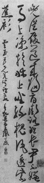 明·周天球书。纸本。草书。凡三行,共四十三字。刊于日本靑山杉雨编《明淸书道图说》。