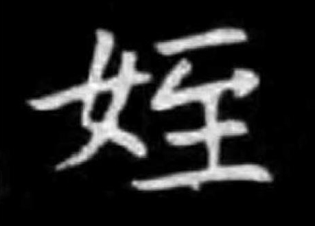 甲骨文合集14067,殷帚姪……按: 卜辭爲商王配偶姓氏。甲骨文合集18055,殷……姪……甲骨文合集21066,殷……帚姪……王子姪鼎,殷周金文集成2289,春秋晚期或戰國早期王子姪自酢(作)飤鼎。按: 上女下至。胡明相墓誌,北魏宣武皇帝崇訓皇太后之從姪。《説文》: “姪,兄之女也。从女至聲。”“姪”在卜辭中爲婦姪之私名,王子姪鼎銘文中爲人名。後世指兄弟的子女。《宋本玉篇·女部》: “姪, 徒結切。 《爾雅》曰: 女子謂晜弟之子爲姪。又音帙。, 同上。”金文中有“”形, 但皆用作人名。 特附於下:妊壺, 殷周金文集成9556, 西周早期(姪)妊乍(作)安壺。蘇甫人盤,殷周金文集成10080,西周晚期𩵴(蘇)甫人乍(作)(姪)妃襄𧷽(媵)𦨗(盤)。齊姬簋, 殷周金文集成3816,西周晚期(齊)(姪)(姬)乍(作)寶𣪕(簋)。