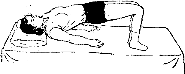 (1) “半桥”运动: 仰卧,两膝屈曲,足跟靠近臀部,用双脚和肩部支撑,抬起骨盆并收缩肛门。重复6~8次(见图1)。