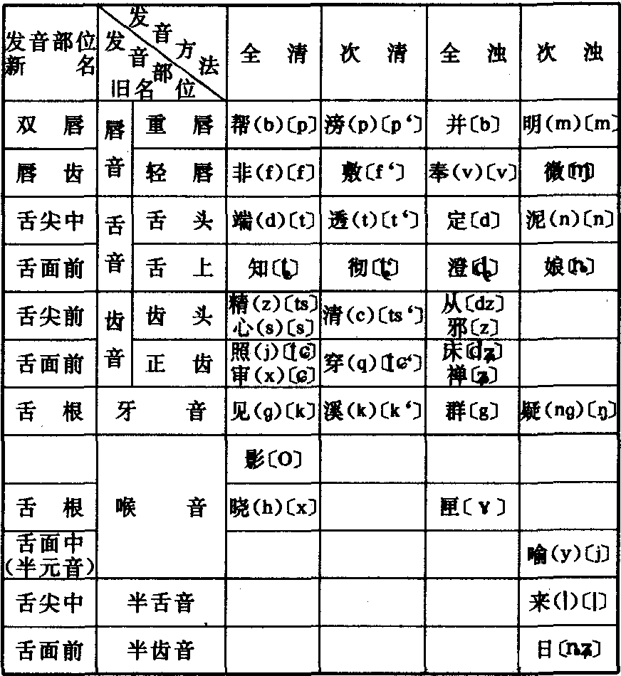 ☚ 纽 五音 ☛ 字母 字母Zimu音韵学术语。简称“母”,声母的代表字,也就是“纽”的代表字。唐末和尚守温大约受了梵文的启发创制三十字母,它们是:唇音不、芳、并、明,舌音端、透、定、泥、知、彻、澄、日,牙音见、匣、溪、群、来、疑,齿音精、清、从、审、穿、禅,照,喉音心、邪、晓、匣、喻、影。宋代等韵学家又增加了轻唇非、敷、奉、微四母及床、娘二母,成三十六字母。三十六字母大约反映了唐宋之际语音的实际情况,是中古音系声母的代表。 ☚ 韵部 五音 ☛ 字母❶音韵学术语。声母的代表字。古无音标,以汉字作字母来标明声母的类别。唐末和尚守温首创三十字母,经后人增补,成为传统的“三十六字母”。参见“三十六字母”。 字母alphabet;letter 字母letter 字母letter 字母letter;alphabet 字母 |