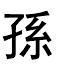 另见:种植 树木 草 花 ☚ 植物 菌类植物 ☛ 孙孫sūn;xùn(一)思浑切,平魂。 ❶孙子;子孙。《列子·汤问》:“子又生~,~又生子,子又有子,子又有~。” ❷再生的或孳生的植物。苏轼《撷菜》:“秋来霜露满东园,芦菔生儿芥有~。” (二) 苏困切,去愿。 ❶通“逊”。谦恭。《礼记·学记》:“杂诗而不~,则坏乱而不修。” ❷通“逊”。出奔。《左传·庄公元年》“夫人~于齐”杜注:“内讳奔谓之~。” 孙即孙络。《灵枢·脉度》: “络之别者为孙。”详孙络条。 孙sūn❶孙子。如:祖孙,孙女。 ❷孙子以后的各代。如:曾孙,玄孙,八世孙。 ❸跟孙子同辈的亲属。如:外孙,侄孙。 ❹植物再生或孳生的。如:稻孙。 ❺姓。 孙(孫)sūn ❶ (孙子) grandson: 长 ~ son's eldest son; eldest grandson ❷ (孙子以后的各代) generations below that of the grandchild: 玄 ~ great- great-grandson; 曾 ~ great-grandson ❸ (植物再生或孳生的) second growth of plants: ~ 竹 new shoots of bamboo from the old stump ❹ (姓氏) a surname: ~ 武 Sun Wu ◆孙女 granddaughter; 孙媳妇 grandson's wife; granddaughter-in-law; 孙子 Sun Zi, ancient Chinese military strategist [tactician] of the Spring and Autumn Period; 孙子兵法 Sun Zi Bing Fa; Master Sun's Art of War; Military Science of Sun Zi; Sun Zi Warcraft; 孙子 grandson 孙sūnsub-collaterals; minute collaterals 孙sūn ❷ 慈孙孝子|王孙贵戚