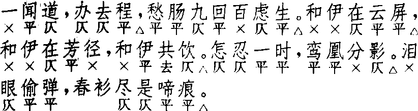 | 释义 | 孝顺歌 孝顺歌无名氏作。今无传本。清初《传奇汇考》云:“以大舜、汉文帝为帝孝,曾参、闵损、仲由为贤孝,姜诗、老莱子为顺孝,黄香、陆绩为幼孝,刻(按此字有误)子、孟宗、庾黔娄、黄庭坚为病孝,吴猛、王祥、郭巨、董永、朱寿昌为苦孝,江革、蔡顺、杨香为难孝,王裒、丁兰为追孝,唐氏为女孝。”按此“二十四孝”之说,大约始于宋代。南宋画家刘松年有《二十四孝图》。据钱南扬考证,此剧作于明末,见《南曲谱及民众艺术中之孟姜女》。《曲海总目提要》亦云:此剧“一名《二十四孝》,明末人所作,不知姓名”。 ☚ 双孝记 天缘箭 ☛ 孝顺歌 孝顺歌无名氏 《李宝》 ![]() 前腔 换头 ![]() 正格十句:3,3△,7△。5△,5△,4△。4,4△。4,4△。换头格九句:4,5△。5△,5△,4△。4,4△。4,4△。换头格将正格首三句改为二句,馀均同。第六句四字平仄;可与换头第五句相互参照。本调见于早期作品,如《张协状元》第十八出四支、《小孙屠》第十五出二支、《杀狗记·迎春私叹》二支,皆于偶数用换头。《八义记·灵辄留朔》三支,不用换头;且第一支第六句失叶,第二支缺第六句。此外如《荆钗记·大逼》、《香囊记·避难》、《绣襦记·逑叶良俦》、《鸣风记·忠良会边》、《紫钗记·仆马临门》、《东郭记·与之偕》、《四贤记·孝养》所题〔孝顺歌〕,实皆为〔孝南歌〕之误题。沈璟《南曲谱》以《李宝》为词式,谓:“此〔孝顺歌〕本调也。查成化年间旧板《戏曲全锦》有十馀套,皆如此。今人知有〔孝南枝〕,而不知此本调,即如知〔锦堂月〕而不知〔昼锦堂〕也。”《琵琶记·糟糠自厌》四支,《南词新谱》改题〔孝顺儿〕。《南词简谱》改题〔孝江水〕。《明珠记·饮药》二支同《琵琶》。《牡丹亭·劝农》四支,《简谱》改题〔孝金歌〕,尚有其他异名见钱南扬校本。小令兼用。 ☚ 锁南枝 孝南枝 ☛ |