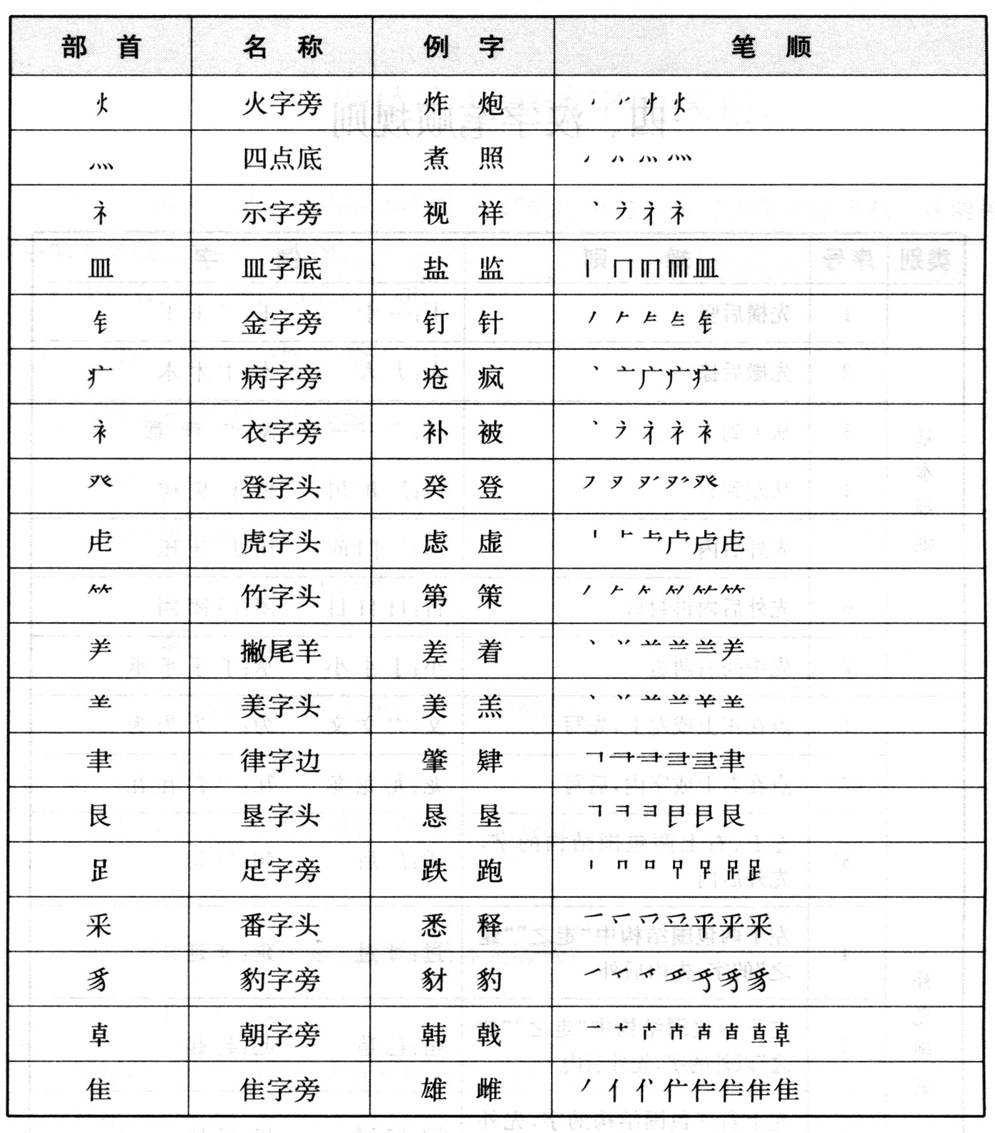 三、常见部首名称和笔顺