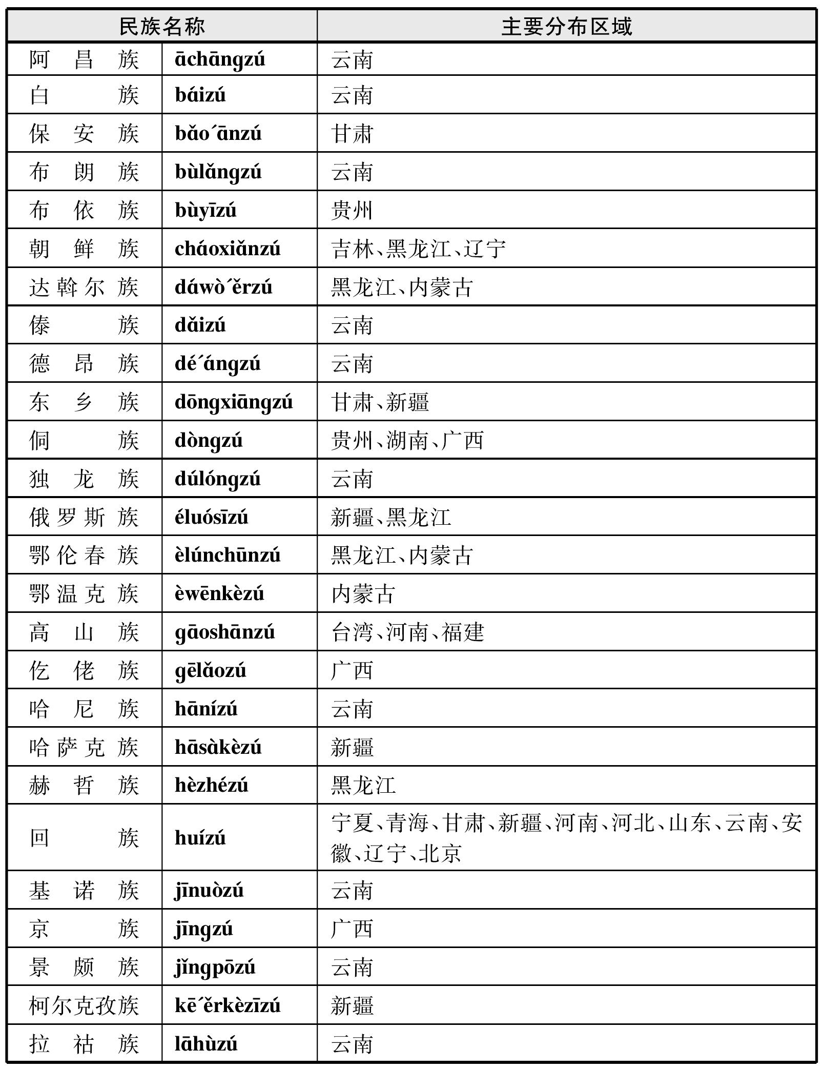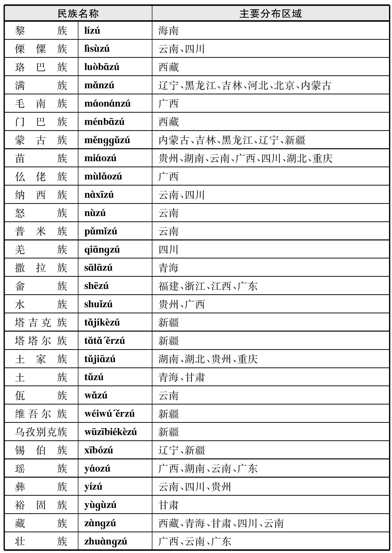 九、我国少数民族简表