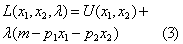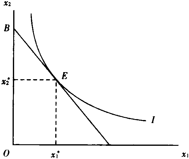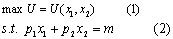 这表示最后支付一个货币单位购买商品1所得的效用等于购买商品2所获得的效用。由(7)还可得: