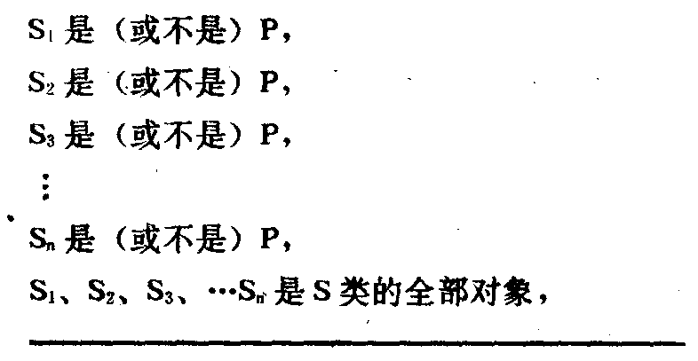 所以,所有的S是(或不是)P. 由于完全归纳推理在前提中考察的是某类事物的全部对象,结论所断定的范围并未超出前提所断定的范围,所以,结论是由前提必然得出的,是确实可靠的,是一种必然性的推理。对于一类事物中的对象的数目相当多的时候,完全归纳推理是不适用的;对一类事物中的对象的数目是无限多的时候,完全归纳推理就无能为力了。因此,完全归纳推理的适用范围是极其有限的。 ☚ 归纳逻辑 简单枚举归纳推理 ☛ 完全归纳推理complete inductive reasoning |