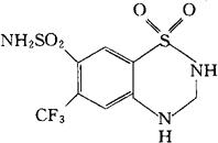 C8H8F3N3O4S2=331.28 CAS-13509-1 6-三氟甲基-3,4-二氢-7-氨磺酰基-1,2,4-苯并噻二嗪1,1-二氧化物。 6-Trifluoromethyl-3,4-dihydro-7-sulfamoyl-1,2,4-benzothiazine 1,1-dioxide. 3,4-二氢-6-三氟甲基-2H-1,2,4-苯并噻二嗪-7-磺酰胺1,1-二氧化物。 3,4-Dihydro-6-(trifluoromethyl)-2H-1,2,4-benzothiadiazine-7-sulfonamide 1,1-dioxide. 利尿药。 用于各种类型的水肿及高血压。 双氢氟噻嗪。 Hydroflumethiazide,Dihydroflumethiazide,Triflumethylhydrothiazide,Saluron,Idroflumetiazide,Diucardin. INN,BAN,BP,DCF,DCIT,IP,JP,NF,NFN,USAN,USP,MI.  |