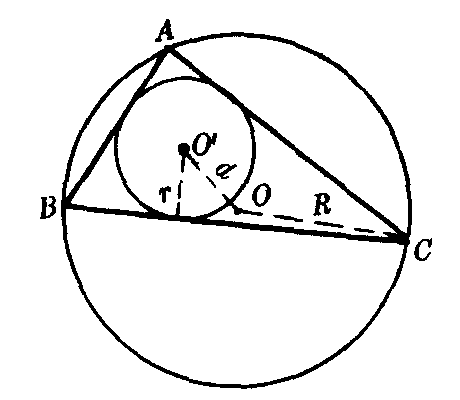 | 释义 | 察柏尔定理 察柏尔定理chaboer dingli设R是三角形的外接圆半径,r是内切圆或旁切圆半径,d是两圆圆心距.则 d2=R2∓2Rr. 式中的负号用于内切圆情况,正号用于旁切圆情况(如图).这个定理叫察柏尔定理,也叫欧拉定理.