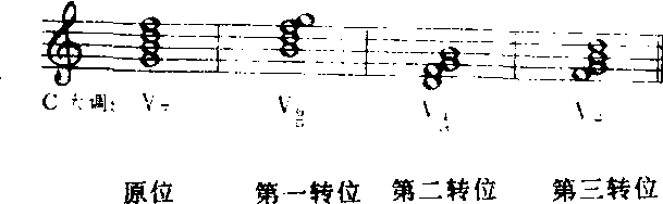);以七音为低音所构成的属七和弦为第三转位,名称为“属二和弦”(Ⅴ