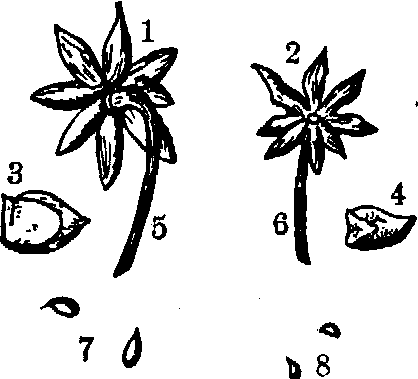 | 释义 | 山大茴食物中毒 山大茴食物中毒山大茴为木兰科八角属植物,其蓇葖果称山大茴,又名毒八角、次大料等。与同科植物八角茴香(俗称大料,可作调味品)很相似,两者极易混淆。山大茴有剧毒,误作八角茴香食用可引起中毒。 山大茴与八角茴香区分图 注: 1.八角茴香蓇葖果 2.山大茴蓇葖果 3.八角茴香蓇葖瓣 4.山大茴蓇葖瓣 5.八角茴香果柄 6.山大茴果柄 7.八角茴香种子 8.山大茴种子 山大茴与八角茴香鉴别