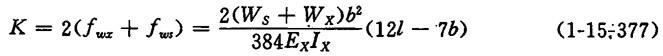 【说明】 此种搭配方式,结构上并不复杂,也不会给操作上带来新的困难,用合理的中高度保证了压区内的均匀压力分布。但是用芯轴辊作为上辊时,虽有挠度小及必需的上下辊刚度比值小的优点,但因要定期润滑和更换轴承而使用上比较复杂,故较少采用。 1.网宽大于2000mm的纸机的搭配计算 (1)上下辊刚度比的计算 【公式】  式中 ExIx——下辊刚度(N·m2) EsIs——上辊刚度(N·m2) l——辊筒轴承中心距(m) b——辊面宽度(m) β——弯矩挠度比,对于中固辊,β=0.45~0.5;对于芯轴辊,β=0.85~0.95; 计算见下 (2)当中高度与线压无关时上下辊总中高度的计算 【公式】  式中 fwx——下辊辊面两端相对于其中心横截面的弯矩挠度(m) fws——上辊辊面两端相对于其中心横截面的弯矩挠度(m) Ws、Wx——上、下辊筒重量(N) 其它同上 2.网宽小于2000mm的纸机的搭配计算 (1)上下辊刚度比的计算 【公式】  式中 ds、dx——分别为上、下辊壳的内径(m) β′——中固辊的剪力挠度比 其它同上 (2)与线压变化无关的必需中高度的计算 【公式】  式中 fwJx、fwJx——上、上辊的弯矩、剪切总挠度(m) Gx——下辊材料的剪切弹性模数(Pa) Fx——下辊辊壳的截面积(m2) 其它同上 |
