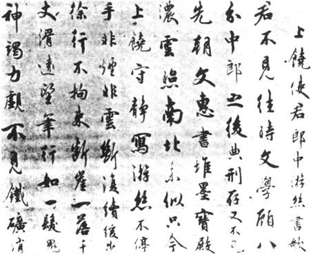 吴说此幅法书不是雄放一路的壮美,而是一种优雅、圆美、端润的风神的显露;他不是将军式地横枪跃马,而颇像冠佩雍容的秀整君子在花前、月下踱著方步,咏吟诗篇一般。 你看在那疏朗的布白中的一个个妍美的字,不正像风流倜傥的君子么? |