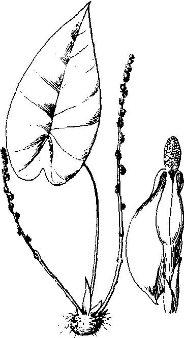 岩芋viviparous remusatiaRemusatiavivipara,别名零余芋。天南星科岩芋属块茎植物。叶片与芋(Colocasia)相似,为心状卵圆形,长 10~35cm,基部心形,有3~5对侧脉,基部一对成40°~50°角叉开,绿色,常部分褐色;叶柄多汁,与叶片等长。块茎在冬季休眠之后生长短的总花梗,佛焰苞灰黄色,下部筒状,上部开展后很快反卷,圆柱状的肉穗花序稍超出佛焰苞筒,雄花在上,雌花在下。通常很少抽出花序。而在块茎上抽出直立、红棕色、不分枝的根出条,后者鳞叶内有数小簇生的小块茎。小块茎长3~5mm,具有钩状鳞片。产于中国云南省,尼泊尔至印度支那半岛。喜温暖、潮湿,荫蔽或半阴,富含腐殖质的肥沃土壤。生长期多施肥、浇水。秋季使其逐渐干燥,冬季休眠。用小块茎繁殖。适于盆栽,为优良观叶植物。