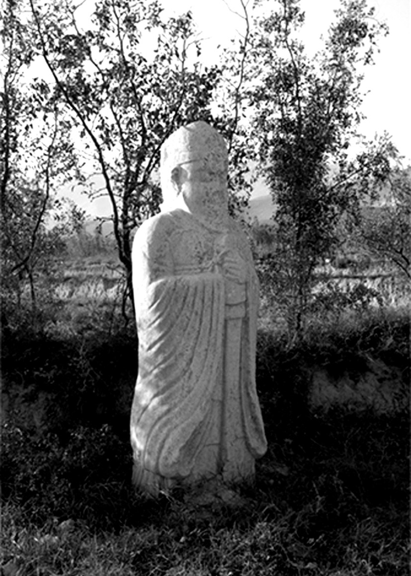| 释义 | 崇陵玄武门外石刻 崇陵玄武门外石刻chonɡlinɡ xuɑnwumen wɑi shike唐代。位于三原县嵯峨乡杏树农林村。唐德宗李适崇陵石刻。存门狮1对,间距约22米,距离门址约8米。狮身各高1.45米、1.70米,宽0.83米、0.93米。再北原有仗马和控马者3对,现仅存控马者3尊,置于东列石狮北约30米的一条南北土崖上,均缺头,残高1.2米~1.36米。身着窄袖长袍,腰系革带,双手拱握。