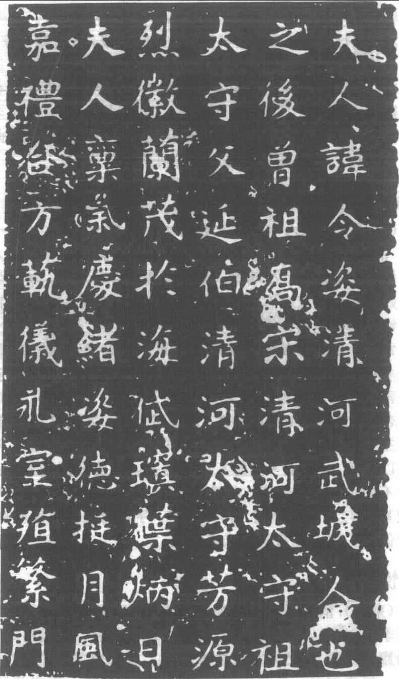 東魏·天平五年(538)刻。小楷十六行,行十五字。有蓋,刻字五行,行五字,篆書陽文題“大魏征北將軍金紫光禄大夫南陽鄧恭伯夫人崔氏之墓志銘”二十五字。志文結勢略欠緊密,東魏志石小,故受尊重。崔令姿為鄧恭伯之妻,卒於北魏·武泰元年(528),東魏·天平五年(538)始葬。一九六五年一月於山東濟南市近郊 (一曰河南洛陽市東郊)出土,現藏濟南市博物館。