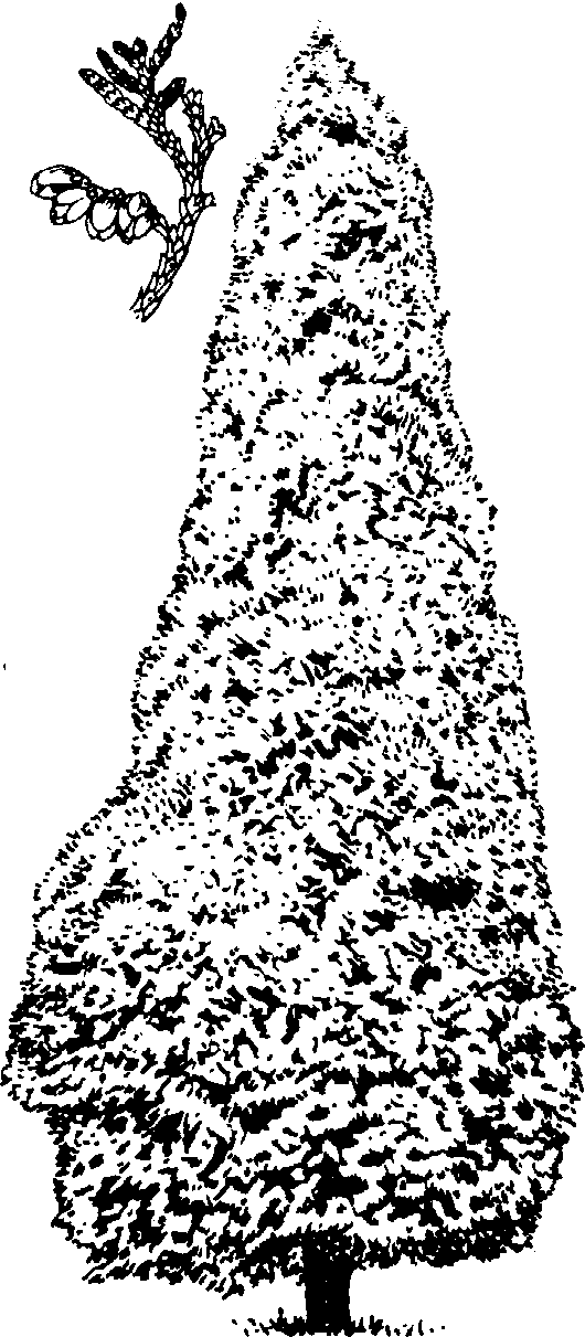 崖柏Sichuan arborvitaeThuja sutchuanen-sis,别名四川侧柏。柏科崖柏属常绿灌木或乔木,为珍稀濒危植物。染色体数2n=2x=22。高5~6(10)m,树皮灰褐或褐色,长条薄片状开裂。枝密集、开展,小枝扁平、多排列成平面。叶除幼苗期针形、刺形外,全为鳞形,长1.5~3.0mm,交互对生。雌雄同株,花单性,单生小枝顶端。球果椭圆形至卵圆形,长6.0~6.5mm,当年成熟。种子扁平,两侧具薄翅。产中国四川城口,生长于海拔1400m左右土层浅薄、岩石裸露、植被稀疏的石灰岩山地,分布范围狭窄。阳性树,稍耐阴,耐瘠薄干燥土壤,忌积水,喜空气湿润和钙质土壤,不耐酸性土和盐土;要求气温适中,超过32℃生长停滞,在-10℃低温下持续10天即受冻害。用播种或扦插法繁殖。宜孤植或丛植,或用作绿篱。 同属常见栽培的还有:朝鲜崖柏(T. koraiensis),常绿乔木,株高可达10m,胸径75cm。幼树皮红褐色、平滑,老树皮灰红色至灰红褐色。浅纵裂;树冠圆锥形至圆头形或卵圆形。产中国长白山区,吉林延吉和白山两市有栽培,朝鲜北部也有。稍耐阴,根系浅,扦插容易成活。香柏(T.occidentalis),常绿乔木,高达20m,胸径1m;树皮红褐色至灰褐色。大枝开展,树冠塔形至卵形。鳞叶长1.5~3.0mm,端尖、内弯、背具腺点。生于小枝上面的叶色深绿,下面的叶色稍浅,鳞叶揉搓后有香气。产美国东部,中国北京、庐山、南京、上海、杭州、武汉、昆明等地有栽培。播种或扦插繁殖。乔柏(T.plicata),常绿大乔木,高可达70m,胸径2m,树皮棕红色,条状浅裂。鳞叶长1~3mm,端尖,微被白粉;球果长圆形,长约1.2cm,种鳞5~6对。产美国及加拿大东部,中国庐山、南京、昆明引种。日本崖柏(T.standishii),别名金钟柏。常绿乔木,高达15m,树皮红褐色,呈不规则片状脱落;大枝开展,先端略下垂;鳞叶端尖,背部无腺点。球果卵形,种鳞5~6对。产日本,中国庐山、青岛、南京、杭州及浙江南部有栽培。