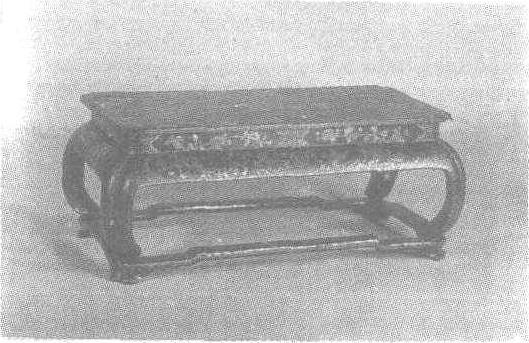 清。长32厘米,宽17.5厘米,高13厘米。北京故宫博物院藏。木胎,委角长方形,有束腰,牙条外鼓,曲足内翻,足下带长方形托泥。髹黑漆,其上用螺钿加金银片镶嵌山水景物、锦纹、折枝花卉、团寿及拐子纹等纹饰,并用金片嵌饰锦纹的十字形花心,使得花纹与锦地对比更加分明。嵌螺钿见“嵌螺钿朱漆龙纹盘”条目。