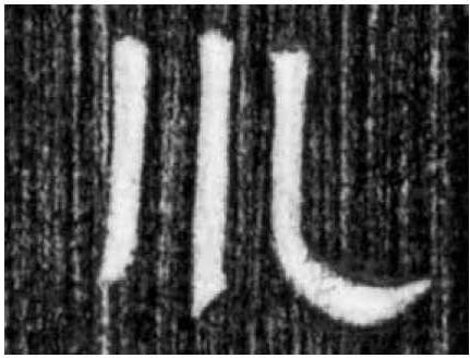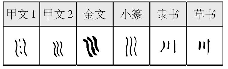 chuān象形,甲骨文、金文、小篆象水流形,隶定为“川”。(一说甲骨文1象两岸之间有河水流动之形。)本义为河流,引申为水道、平地、平原等。 【辨析】 以“川”作音符构成的形声字读音不同。chuān:氚∣chuàn:钏∣zhèn:圳∣shùn:顺∣xùn:训、驯。川 (chuān)貫穿通流水也。 川 ☚ 刃 旡 ☛ 川见〖玆〗。 |