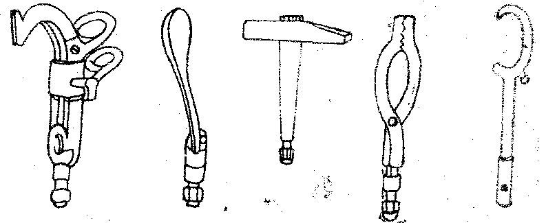 图4 钩状手 钩状手实际上是一种具有两个钩形手指结构的机械假手。它有动力牵引装置,两个手指钩可以主动地开闭。其操纵方式和机械假手完全相同,即利用肩部的动作拉动牵引索开手,依靠装在手上弹簧或橡皮筋闭手 (见图3)。但由于其外形不象人手,所以国内习惯上看作一种工具手,应用得比较普遍,而且有多种形式,如图4所能勾取重物,还能捏取细薄的物件。这是比普通机械假手优越之处。另外,只要将钩状手的腕部连杆作成与机械假手或装饰假手的一样,便可根据情况,随时方便地换用各种手头。 ☚ 装饰上肢假肢 牵引式机械假手 ☛ |