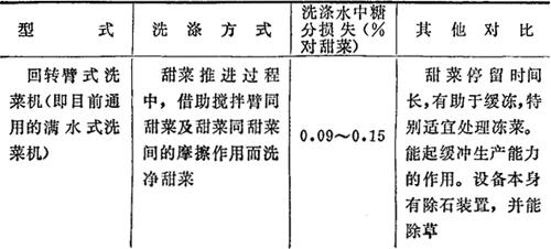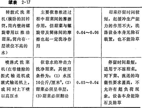 从表2-17中可以认为,第一种适用于低温地区。第二及第三种适用于甜菜不冻地区,当甜菜的含土量较高时,还可用作第一种洗菜机的补充。