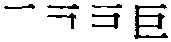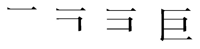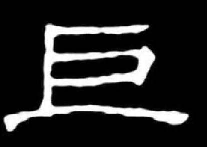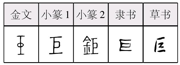 巨 金文; 金文; 篆jù[像工具形。(《説文》:“巨,規巨也。從工。象手持之。巨或從木矢。矢者其中正也。 古文巨。”巨,金文像“工具”,或像(大)手持“工字尺”,“矩”本字,後借爲“大”人(巨大、巨人、巨款、巨變)。)] [西漢] 司馬遷 《史記·平准書》:“是歲費凡百餘巨萬。”(這一年花費的錢共計一百多萬萬。) 巨鉅;jù(4画)
