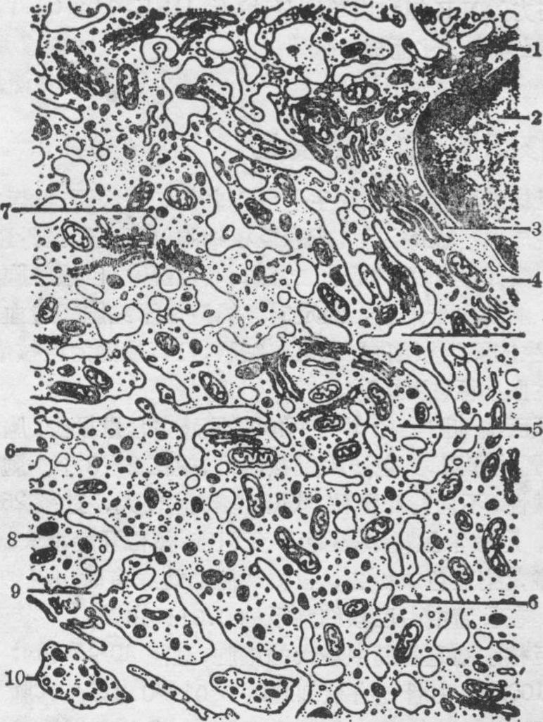 巨核细胞电镜模式图 1.核周带 2.胞核 3.粗面内质网 4.滑面内质网 5.由滑面内质网分隔的胞质小区 6.边缘带 7.中间带 8.即将脱落的胞质块 9.与细胞表面通连的滑面内质网腔 10.血小板 电镜研究证明,巨核细胞中滑面内质网膜彼此通连,形成管和泡,将胞质渐分隔成许多小区。每个小区的结构和体积与血小板相似,管和泡的膜融合形成血小板的界膜,后与内陷折入的胞膜接连,形成血小板的膜。每个小区与细胞脱离,释放到血流,成为血小板。 血小板发生的主要刺激因子为血小板生成素。此物质是一种多肽,生成部位不明。实验证明,外周血血小板数量显著减少时,血小板生成素含量增高,促使造血祖细胞增殖分化为巨核细胞,生成较多的血小板。反之,若给机体输入大量血小板,血小板生成素含量减低,导致巨核细胞体积缩小,功能减退。近年发现巨核细胞集落刺激因子(MEG-CSF),在体外培养中能刺激巨核细胞增生发育。此物对温度敏感,加热时易被破坏,分子大,不被透析,与嗜酸性细胞集落刺激因子并存。目前对两种因子间的关系不清楚,也未肯定MEG-CFS与血小板生成素间的关系。正常骨髓中,巨核细胞的数量约为1.6×107/kg(按体重计,下同),处于增生期的细胞约占一半。血小板的数量为15.1±3.8×109/kg,寿命约10天,更新率为每小时9.7×107/kg。 ☚ 淋巴细胞发生 循环系统 ☛ |