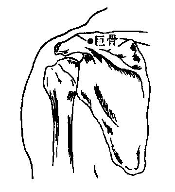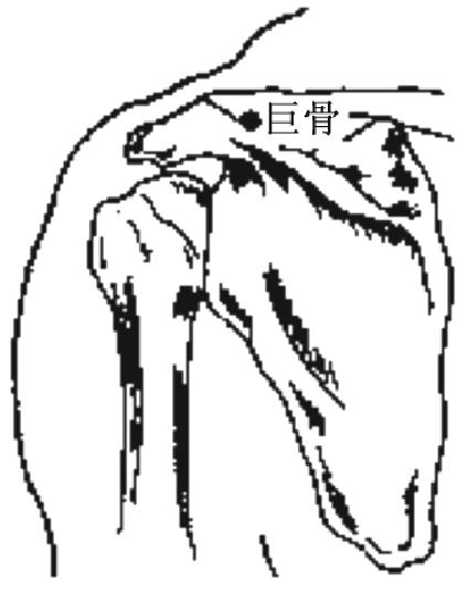 图23 巨骨即锁骨。 巨骨jù gǔ《本草纲目》木部第36卷溲疏(5)。药名。溲疏的别名,参见“溲疏”条。 巨骨jùɡǔ经穴名。代号LI16。出《素问·气府论》。属手阳明大肠经。位于锁骨肩峰端与肩胛冈之间凹陷处。主治肩胛痛、肩关节周围炎。直刺0. 5 ~ 1 寸。灸3 ~7壮或5 ~15 分钟。