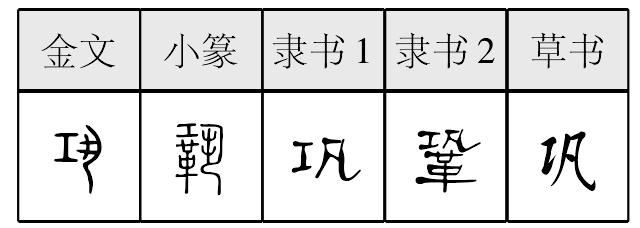 西周象人用两手(丮的变形)持工具形。用为巩固的“巩”字。《说文》丮字略讹,隶楷变为平凡的凡,更误。《说文》说“巩”是抱义,读gǒng。“抱”与“保”义相通,有巩固义。小篆“巩”下或增“手”,重复。小篆又有鞏字,从革,从巩,巩亦声。是用皮革束物义。引申为牢固,结实义。此义古代以来多写鞏字。其实“革”旁可不要。现以“巩”为规范字。鞏为繁体字。见《总表》。