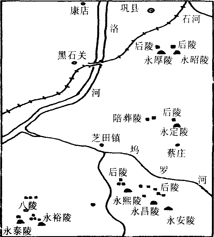 | 释义 | 巩义宋陵北宋皇陵区。位于河南省巩义市境内嵩山、洛河间丘陵上,即所谓的 “嵩山为屏,大河为带” 。陵区以芝田镇(宋永安县治)为中心,南北约15千米,东西约10千米。北宋9帝,除徽、钦2帝被金兵北掳死在东北,葬地不详外,其余7帝皆葬于此。加上赵匡胤的父亲赵弘殷的陵墓(永安陵),统称 “七帝八陵” 。陵区还祔葬皇后陵20余座。另有高怀德、赵普、曹彬、蔡齐、寇准、包拯等大臣墓7座。还有陪葬宋陵的宗室亲王、公主、皇子、皇孙、诸王夫人墓144座(有的墓冢留存)。8座陵墓按地望可分4区,依次为: 一区宣祖永安陵、太祖永昌陵、太宗永熙陵; 二区真宗永定陵; 三区仁宗永昭陵、英宗永厚陵; 四区神宗永裕陵、哲宗永泰陵。宋靖康、建炎年间遭金兵破坏,至元代地面建筑全部被毁。中华人民共和国成立后,中国学者先后多次对宋陵进行考察。巩义宋陵结构完整,陵前列石大致齐备,为研究宋代陵墓制度和石刻艺术提供了十分有利的条件。