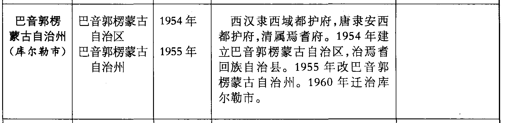 巴音郭楞蒙古自治州(库尔勒市)巴音郭楞蒙古自治区巴音郭楞蒙古自治州1954年1955年西汉隶西域都护府,唐隶安西都护府,清属焉耆府。1954年建立巴音郭楞蒙古自治区,治焉耆回族自治县。1955年改巴音郭楞蒙古自治州。1960年迁治库尔勒市。