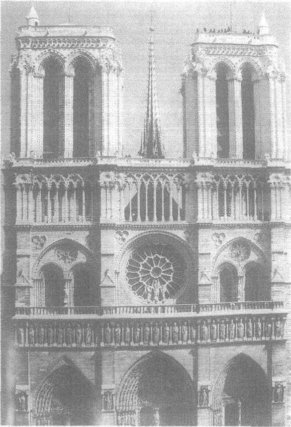 巴黎圣母院 ☚ 佛罗伦萨大教堂 神圣家族教堂 ☛ 巴黎圣母院位于巴黎市中心塞纳河中的小岛上,是一座典型的哥特式教堂。始建于1163年,历经150多年才建成。建筑占地5500平方米,纵深130米,宽48米。南北两塔高69米,南塔上有座重达13吨的时钟。正面3重拱门,门上立着犹太和以色列的28位国王的全身像。大殿堂可容纳9000人。内外装饰着精美的雕刻和雕像。参见“艺术”中的“巴黎圣母院”。 巴黎圣母院长篇小说。雨果作。1831年发表。通过吉卜赛女郎爱斯梅哈尔达被巴黎圣母院副主教克罗德诬陷迫害致死的悲惨故事,揭露了教会的黑暗,僧侣的虚伪和封建贵族的残忍;歌颂了爱斯梅哈尔达的人性美和奇丑无比的敲钟人加西莫多的灵魂美。情节紧张复杂,以对比手法刻画人物性格,体现了典型的浪漫主义的艺术特征。 巴黎圣母院法国巴黎著名的天主教堂。1163年兴建,1235年完成。正面一对塔楼高约60米。是欧洲早期哥特建筑与雕刻的主要代表。参见“旅游学”中的“巴黎圣母院”。 巴黎圣母院 巴黎圣母院法国巴黎著名的中世纪哥特式大教堂。以其规模、年代和在考古、建筑上的价值而驰名世界。座落在塞纳河中的城岛上。1163年,由教皇亚历山大三世和法王路易七世共同主持奠基,动工兴建,1345年建成。内部大厅6240平方米,屋顶高35米,塔高68米,可容9,000人进行宗教活动。大厅正中央安放着玉石雕成的圣母像。祭坛、回廊、墙壁、门窗均以绘画雕刻装饰。教堂经过历代的损坏,曾于19世纪中叶历时20年重加修建,于1864年重新开放。巴黎圣母院整个建筑用石头砌成,所有屋顶、塔楼、扶壁顶端都用尖塔作装饰。这种建筑对以后欧美所建哥特式建筑有重大影响。院内藏有13-17世纪的许多艺术珍品。 ☚ 巴黎市政厅 巴士拉 ☛ 巴黎圣母院 巴黎圣母院位于法国巴黎,建于1163—1250年,是世界公认的第一个具有深远影响的奇特建筑的佳作。教堂平面深约125米,宽约47米,中厅很高,是侧廊的三倍半。这种尺度的空间具有极为强烈的宗教情感。教堂内部拱券尖峭,骨架券从柱头上散射出来,粗壮的圆柱形成了刚劲有力垂直线条,处处筋骨嶙峋,几乎没有墙画,类似于框架结构的所有部件裸露得淋漓尽致,使整个室内空间产生一种峻峭清冷,腾空而起的向上动势,从而渲染了教会那种纯洁的精神生活的说教。使用独立的飞券在教堂两侧凌空越过侧廊上方,以支承中厅拱顶的侧向推力,这也是巴黎圣母院最先取得的一项结构体系改革的新成就。教堂的正立面从上至下分三层,设透视门三层,中间最大的一座与教堂最高的尖塔形成有力的均衡,中层两侧各有券门一对,中央是象征着天堂,雕刻得玲珑剔透的纹形大圆窗。上层为对称的两座塔楼。这三层之间由两道以尖券组成的水平箍带作为过渡联结,从而奠定了法国哥特式教堂正立面的基本形式。教堂四周的扶壁、墙垣和塔都垂直向上的,其端部大都是锋利的,直刺苍圣穹的小尖顶。所有的拱券,门上的小花板壁的墙脊和一切建筑细部的上端都是尖的。因此,整个教堂似乎藏着一种向上的冲劲,随时都有可能升腾而起,直刺青天。法国19世纪伟大的文学家维克多·雨果在他的著名小说 《巴黎圣母院》 中对这座最出色的教堂作出了一番脍炙人口的描绘: “这个可敬的建筑物的每一个面,每一块石头,都不仅是我们国家历史的一页,并且也是科学史和艺术史的一页。它可以说是一个巨大的由石头组成的交响乐。” ☚ 卢浮宫 巴黎大凯旋门 ☛ 巴黎圣母院 《巴黎圣母院》发表于1831年,是法国浪漫主义文学的奠基者——雨果的第一部具有重大思想意义和艺术价值的长篇小说,被誉为浪漫主义的代表作。 ☚ 基督山伯爵 悲惨世界 ☛ 巴黎圣母院 巴黎圣母院位于法国巴黎,建于1163—1250年,是世界公认的第一个具有深远影响的奇特建筑的佳作。教堂平面深约125米,宽约47米,中厅很高,是侧廊的三倍半。这种尺度的空间具有极为强烈的宗教情感。教堂内部拱券尖峭,骨架券从柱头上散射出来,粗壮的圆柱形成了刚劲有力的垂直线条,处处筋骨嶙峋,几乎没有墙面,类似于框架结构的所有部件裸露得淋漓尽致,使整个室内空间产生一种峻峭清冷,腾空而起的向上动势,从而渲染了教会那种纯洁的精神生活的说教。使用独立的飞券在教堂两侧凌空越过侧廊上方,以支撑中厅拱顶的侧向推力,这也是巴黎圣母院最先取得的一项结构体系改革的新成就。教堂的正立面从上至下分三层,设透视门三层,中间最大的一座与教堂最高的尖塔形成有力的均衡,中层两侧各有券门一对,中央是象征着天堂,雕刻得玲珑剔透的纹形大圆窗。上层为对称的两座塔楼。这三层之间由两道以尖券组成的水平箍带作为过渡联结,从而奠定了法国哥特式教堂正立面的基本形式。教堂四周的扶壁、墙垣和塔都是垂直向上的,其端部大都是锋利的,直刺苍穹的小尖顶。所有的拱券,门上的小花板壁的墙脊和一切建筑细部的上端都是尖的。因此,整个教堂似乎藏着一种向上的冲劲,随时都有可能升腾而起,直刺青天。法国19世纪伟大的文学家维克多·雨果在他的著名小说 《巴黎圣母院》中对这座最出色的教堂作出了一番脍炙人口的描绘: “这个可敬的建筑物的每一个面,每一块石头,都不仅是我们国家历史的一页,并且也是科学史和艺术史的一页。它可以说是一个巨大的由石头组成的交响乐。” ☚ 卢浮