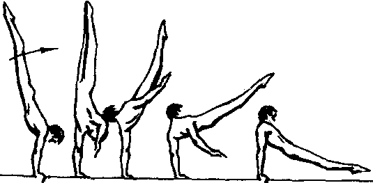 ☚ 手倒立直臂前翻成挂臂撑   倒立前翻以一臂为轴转体360°成支撑 ☛