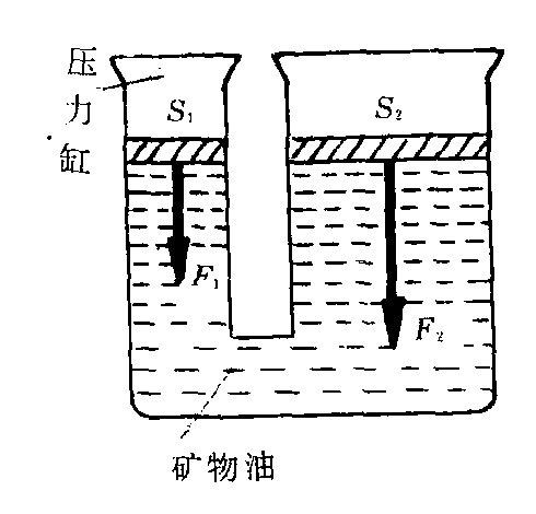 | 释义 | 帕斯卡定律流体静力学的一条定律,指出不可压缩静止液体中任一点受外力产生压力增值后,此压力增值瞬时传至静止液体各点。这个定律是B.帕斯卡1653年提出的。利用这个定律可以设计、制造水压机及液压驱动装置。 帕斯卡定律 帕斯卡定律pasika dinglu流体静力学的基本定律之一,1653年由法国物理学家B·帕斯卡提出,又称帕斯卡原理。其内容为:施加压强于密闭容器内的流体,此压强将等值地传递到流体内部的各个部分及容器器壁。当密闭容器中充满液体时,密闭液体在外部压强的作用下体积将被压缩一些。若外部压强发生变化,则直接被外部(如活塞)施加压力的区域液体体积的微弱变化就会由近及远地传播到液体各个部分。因此压强的变化(或压强的传递)在液体中是以声速进行的。液体重新达到平衡状态后,全部液体都将处于变化后的新的压强之下。当密闭的容器中充满气体时,密闭气体虽然因体积易于压缩而比液体变化的过程要稍微复杂 一些,但仍具备压强变化以声速传播和遵从帕斯卡定律的特点。实际上,所谓密闭液体或气体并不 一定非得局限于密闭容器中,如盛在连通器中的液体可以被看作在大气中密闭。当连通器一侧的气体压强增大时,这个增加的压强必然通过液体传递到连通器的另一侧,并促使其液面上升,与这个增加的压强达到平衡。B·帕斯卡提出帕斯卡定律的同时,还提出了连通器原理和关于水压机的初步设想。19世纪20年代,人们应用帕斯卡定律研制出了由液压泵和控制设备组成的液压系统。该系统具有灵活性大、高效增力以及对控制系统有快速和精确的响应等优点。飞机在空中升、降、盘旋和收放起落架都是依靠液压系统进行操纵。此外,机床、汽车、拖拉机、船舶和机器人等也要依靠液压系统进行工作。帕斯卡定律应用范围很广,水压机、液压千斤顶、液压升降机、真空泵和空气压缩机都是依据帕斯卡定律工作的。 ☚ 重力场中静止流体内的压强 液压机 ☛ 帕斯卡定律 帕斯卡定律Pasika dinglu液体(或气体)传递压强的定律。1653年由法国物理学家B·帕斯卡提出。其内容是:加在密闭容器内液体(或气体)上的压强,能够瞬时且大小不变地传递到液体(或气体)内的各个部分及容器壁上。根据帕斯卡定律,在小活塞上加很小的力便可以在大活塞上得到很大的力(如图所示),这便是液压机的工作原理。帕斯卡定律的应用范围很广,由于液压系统具有灵活、高效增力的特点,因而被广泛地应用在工业生产领域中。万吨水压机、油压千斤顶、液压升降机等液压机,真空泵、空气压缩机械,以及机床、机车、起重机、船舶等的液压传动与控制装置,都利用了这一规律。