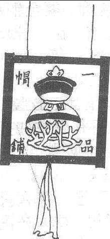 此幌为画幌、幌中书有“一品帽铺”四个字,表示此铺专营高档帽子。