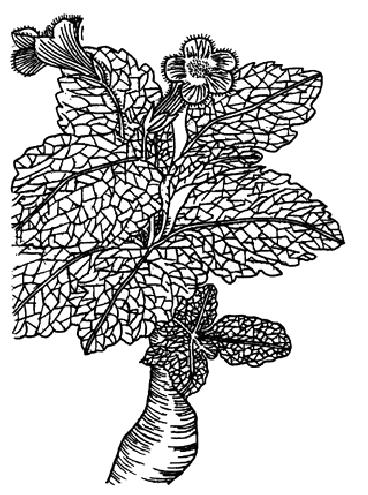 【基原】为玄参科植物地黄Rehmannia glutinosa( Gaertn.)Libosch.(又名:苄《尔雅》,芑《别录》,牛奶子《本草衍义》,婆婆奶《救荒本草》,狗奶子《植物名实图考》,山烟、山白菜、酒壶花、甜酒棵、蜜罐棵)的根茎。