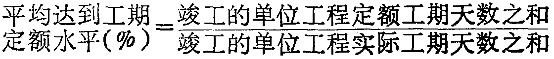 | 释义 | 平均达到工期定额水平是指报告期竣工的单位工程定额天数之和与实际工期天数之比,说明工期定额平均达到的水平是考核定额工期重要指标之一。计算公式为: