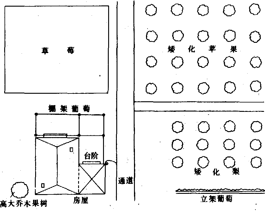 庭院栽种配植示意图 庭院栽培利用庭院种植经济树木和作物的栽培方法。它能充分利用土地,绿化庭园、道路、篱壁、凉台、屋顶等进行立体栽培,提高光能利用率,净化空气,减少污染,增加农产品收入。适于庭院栽培的果树很多,可因地制宜加以选择。 |