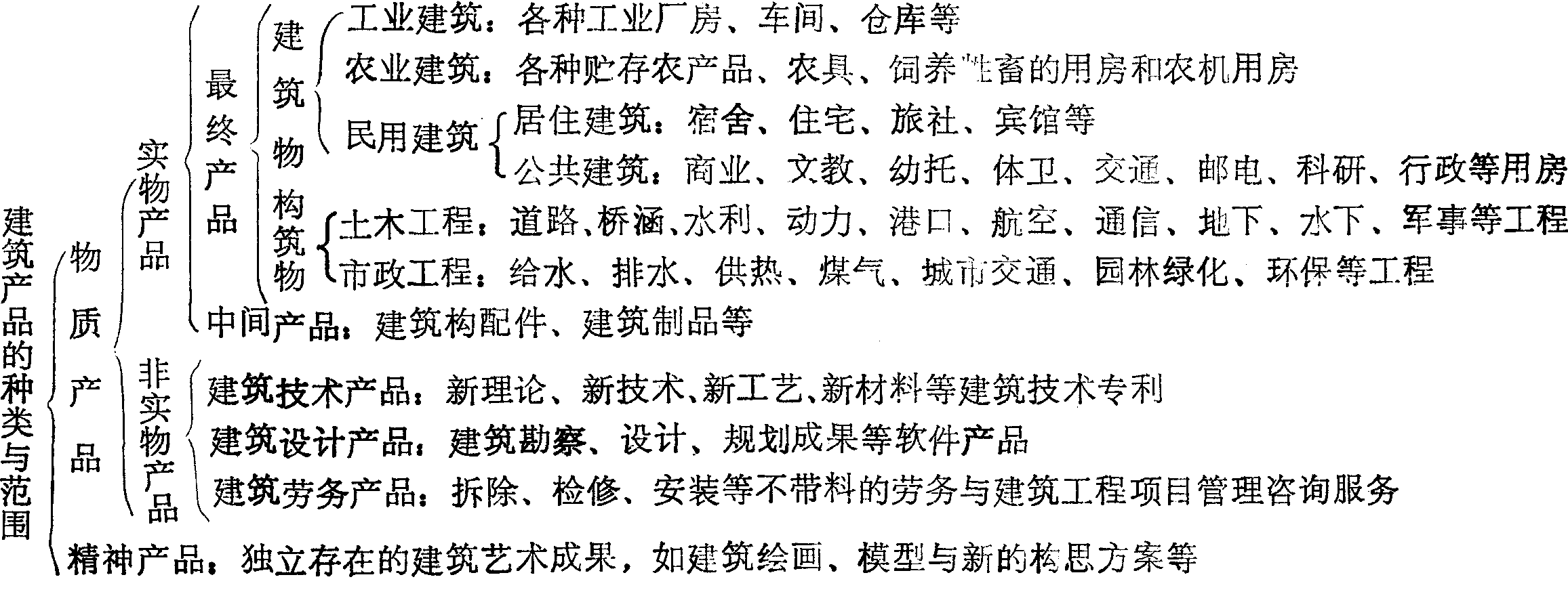 | 释义 | 建筑产品主要是指建筑业生产的,具有一功能、可供使用的物质成果。同时,随着现代产品概念的扩展,它不仅包括物质成果,而且也包括非物质成果。