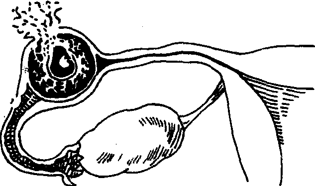 | 释义 | 异位妊娠(俗称宫外孕) 异位妊娠(俗称宫外孕)正常妊娠时孕卵着床于子宫体部内膜。若孕卵在子宫体腔以外着床发育,则称为异位妊娠,俗称宫外孕,包括输卵管妊娠、卵巢妊娠、腹腔妊娠、宫颈妊娠及子宫残角(指一半子宫发育,另一半发育异常成子宫残角)妊娠等(见图6.6-1)。异位妊娠和正常妊娠之比为1∶50—300,其中以输卵管妊娠最常见,约占95%—98%。本条目主要讨论输卵管妊娠。输卵管妊娠是妇科常见的急腹症,可引起腹腔内严重内出血,如不及时抢救可危及生命。其发生原因主要由于输卵管慢性炎症而致,粘膜粘连管腔狭窄,精子虽可通过并在输卵管外侧1/3处与卵子相遇受精成受精卵,但受精卵不能通过狭窄的管腔而在输卵管着床发育。由于输卵管管腔狭小的蜕膜层,不能适应胎儿的生长发育,当输卵管膨大到一定限度,可发生输卵管流产(见图6.6-2)或输卵管破裂(见图6.6-3),引起腹腔内出血。前者较多见,但后者出血量多。大多数胚胎流出到腹腔后被吸收,偶而胚胎继续存活,绒毛组织仍附着于原位或排至腹腔后重新种植而获得营养,胚胎在腹腔中继续生长,可发展为继发性腹腔妊娠。极为少见。在宫外孕时也有与宫内妊娠相同的内分泌变化,故子宫增大变软,子宫内膜也出现蜕膜的改变,月经停止来潮,宫外孕的主要症状有: